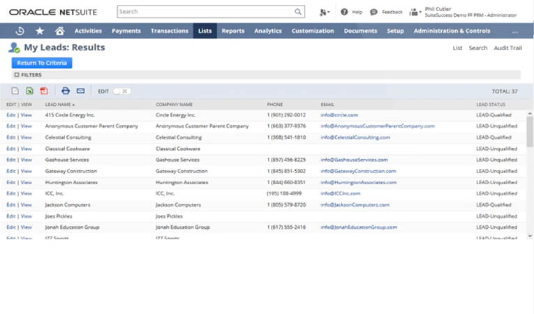 NetSuite CRM automates and streamlines businesses process through the integration of sales force automation, contact management, marketing automation, customer service and support with built-in business intelligence and productivity tools in a single web-based platform.
