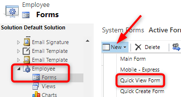 - Click + New form and choose Quick View Form.