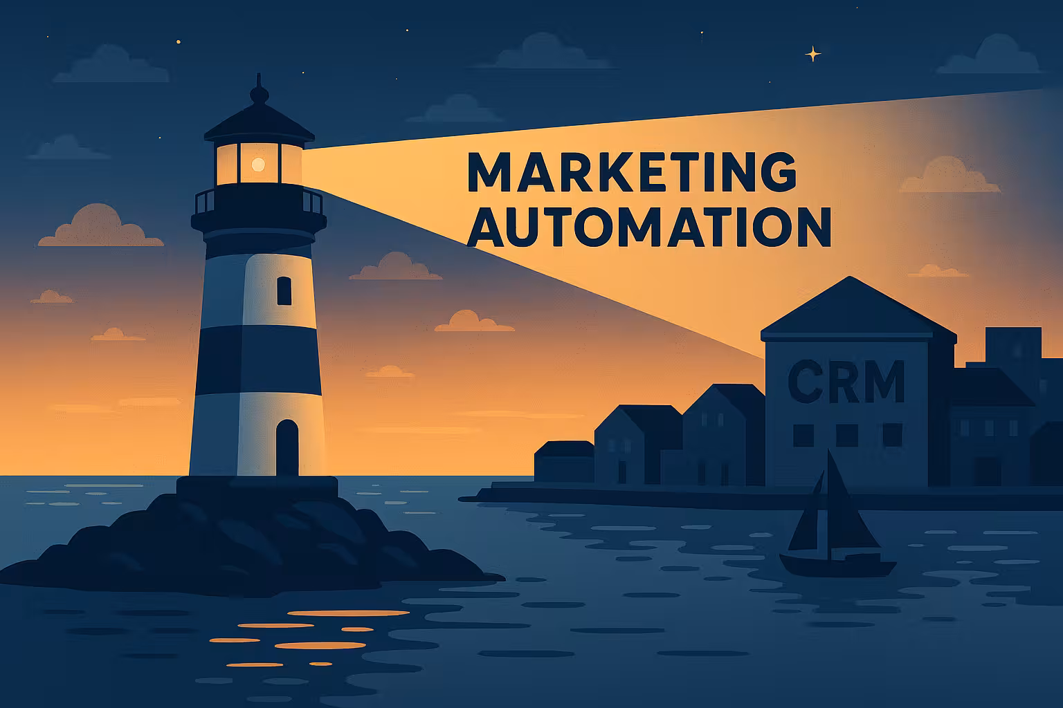 Think of marketing automation as the lighthouse: it shines a guiding light, attracting prospects through targeted campaigns, personalized messaging, and automated workflows. It helps guide interest and engagement toward your business. CRM, on the other hand, is the harbor: it organizes and manages those leads once they arrive, keeping information structured, tracking interactions, and ensuring sales teams can engage effectively at the right time. Together, they create a seamless process from initial interest to conversion, ensuring every opportunity is captured and nurtured.