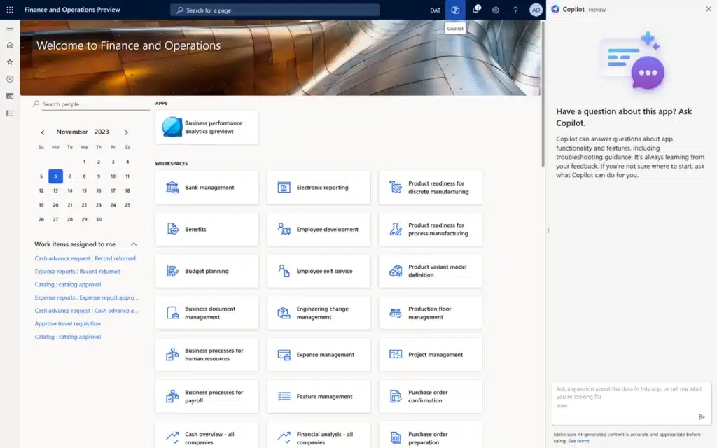 - Use Copilot in Dynamics 365 Supply Chain Management to receive AI-generated recommendations for replenishment, demand forecasting, and anomaly detection.