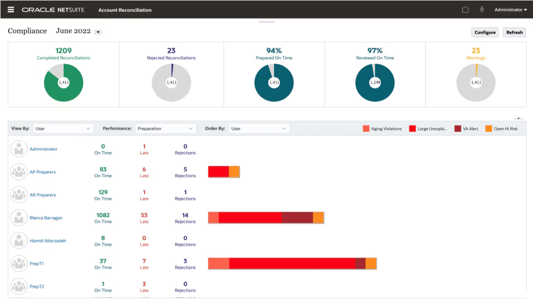 - Track progress of each reconciliation in real time, from preparation to approval.