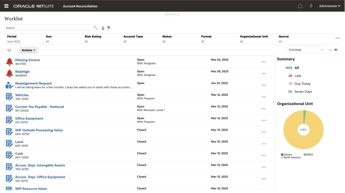 With NetSuite Account Reconciliation you can accelerate month-end and quarter-end closes while ensuring financial statements are reliable.- Automation reduces the time required for routine reconciliation tasks.