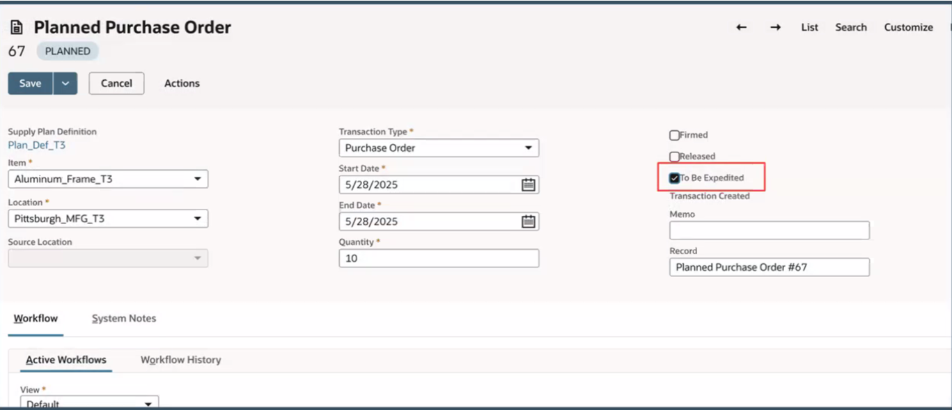 When critical orders can’t wait, planners now have a faster way to flag them. A new To Be Expedited checkbox is available on both the Planned Purchase Orders and Order Items pages, allowing you to instantly mark high-priority orders that need urgent attention.