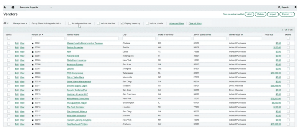 What makes list views so useful is their flexibility. Whether you’re tracking recently modified vendor profiles, reviewing outstanding invoices, or viewing inactive records, list views give you the functionality you need to take action quickly.
