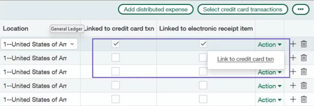 - Split transactions (e.g., hotel and airfare) within a single expense report