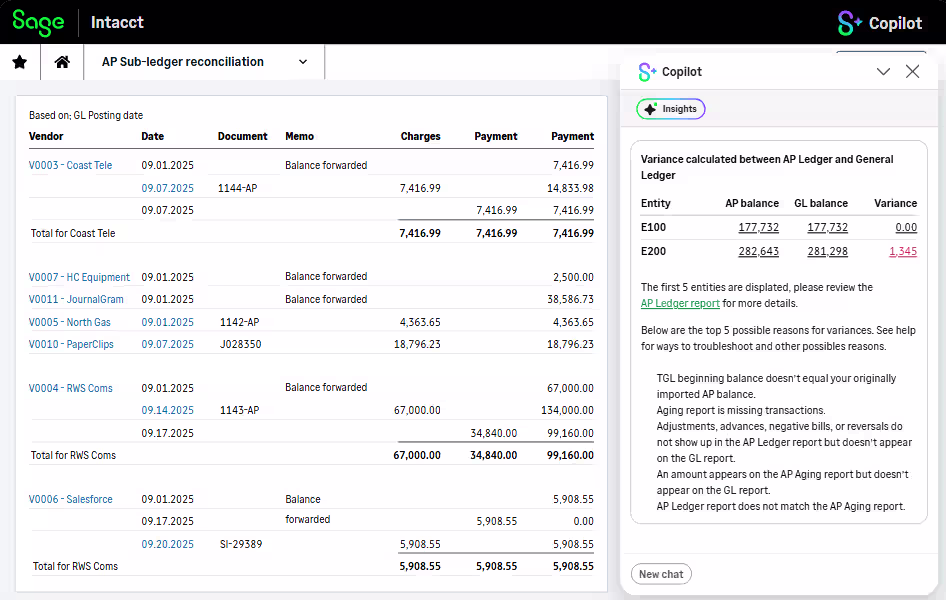 With Sage Copilot—the conversational AI assistant—teams can instantly access information they would normally search for in spreadsheets or reports: