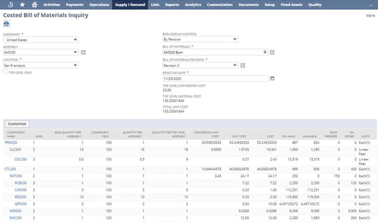 Microsoft and NetSuite ERP solutions have the following capabilities to manage your BOMs: