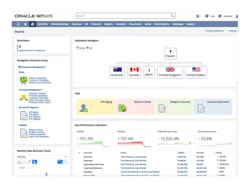 Automate financial processes and gain real-time visibility into your company’s financial health. NetSuite ERP consolidates accounting, billing, and compliance into one system, ensuring accurate reporting, faster financial close, and adherence to regulatory standards. Built-in automation eliminates manual tasks, saving finance teams valuable time.