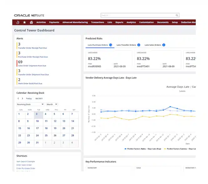 Enhance supply chain visibility and efficiency with predictive analytics and automation. NetSuite’s supply chain control tower provides real-time insights into production capacity, demand forecasting, and procurement. Businesses can optimize costs, reduce risks, and ensure timely product availability.